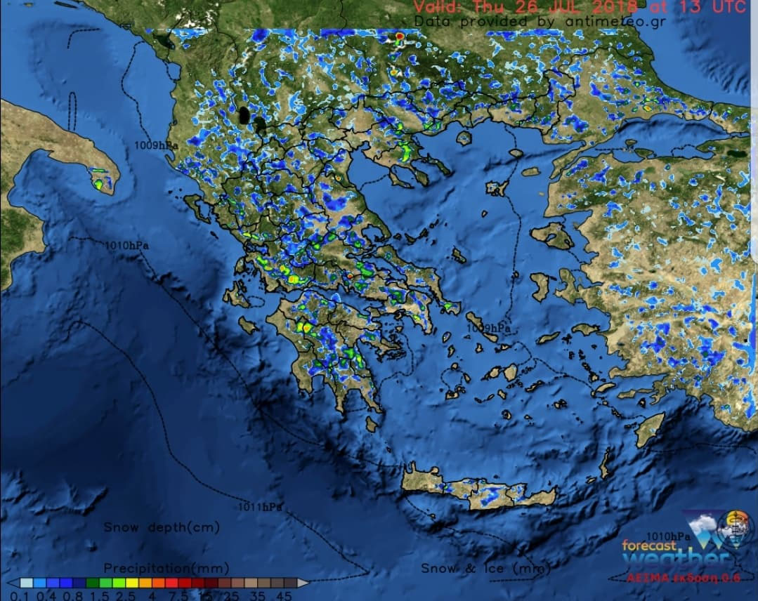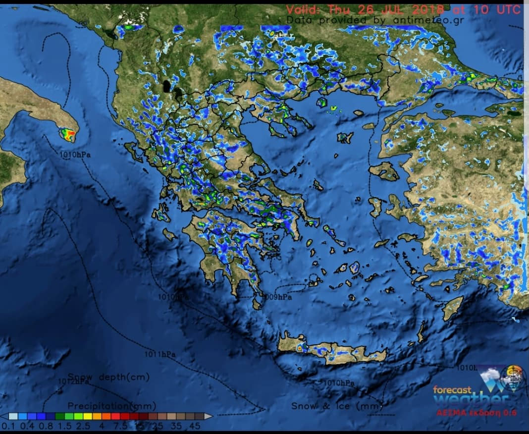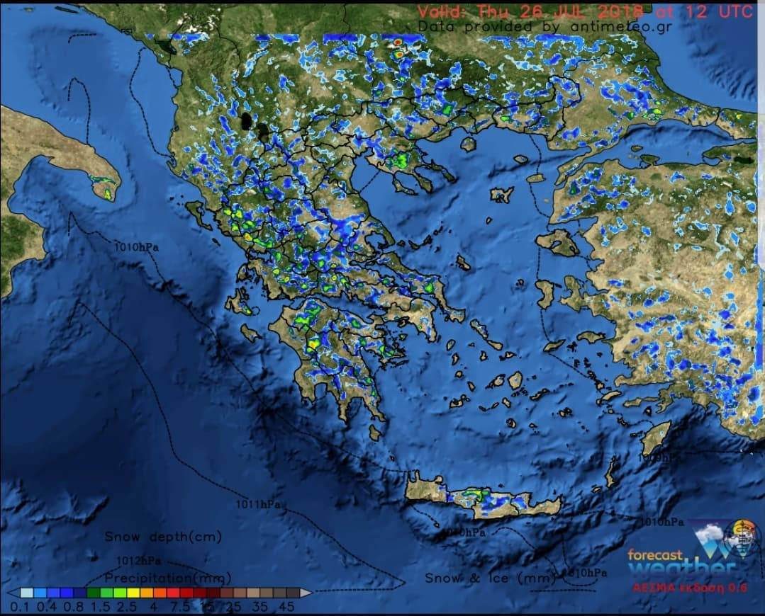 Έκτακτο δελτίο καιρικών φαινομένων.Έντονες καταιγίδες στην Ηπειρωτική Ελλάδα, την Πέμπτη 26/7/18.