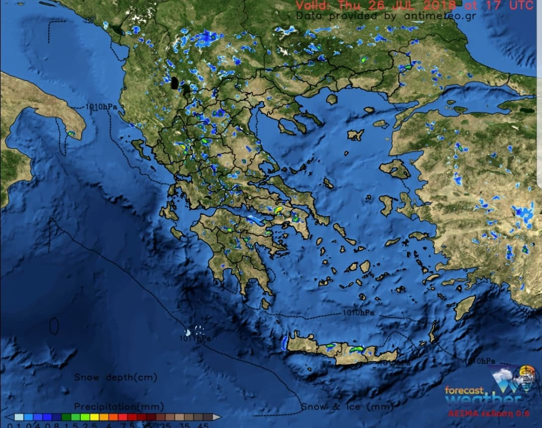 Η έντονη αστάθεια θα συνεχιστεί στην Ηπειρωτική Ελλάδα και την Πέμπτη 26 Ιουλίου 2018. Μάλιστα κατά τόπους θα εκδηλωθούν και έντονα φαινόμενα.