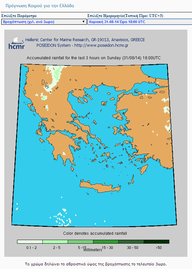 Καιρός: Γενικά αίθριος. Τοπικές νεφώσεις στη βόρεια Κρήτη. Άνεμοι: από βόρειες διευθύνσεις 4 με 6 τοπικά στις Κυκλάδες 7 με 8 μποφόρ με βαθμιαία εξασθένηση. Θερμοκρασία: από 24 έως 28 και τοπικά στη νοτιά Κρήτη έως 32 βαθμούς Κελσίου.
