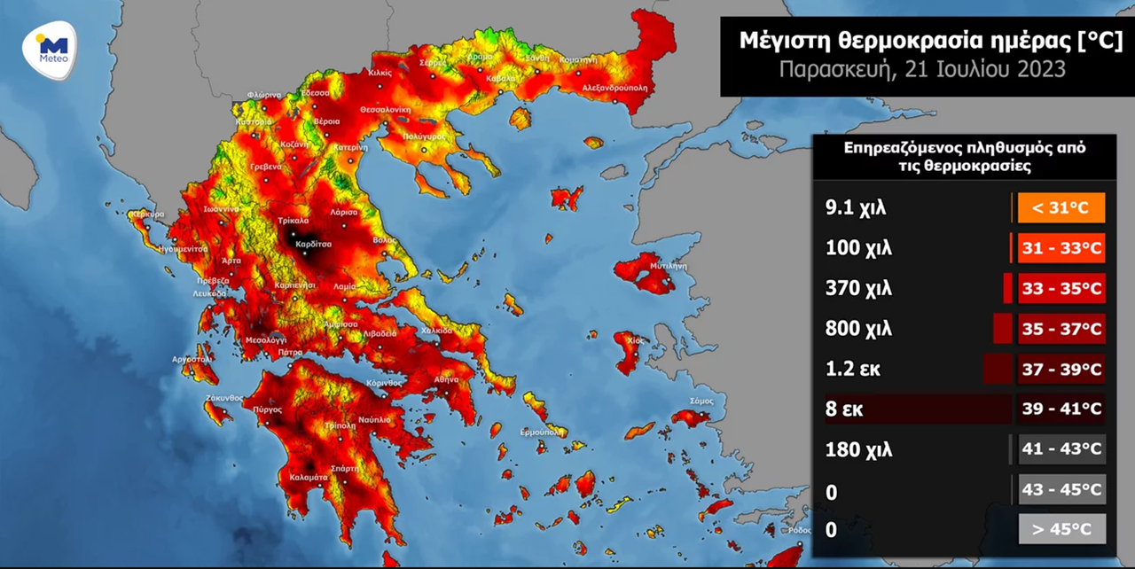 1. Την Παρασκευή 21-7-2023 οι μέγιστες τιμές της θερμοκρασίας θα φθάσουν: