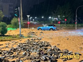 Παράλληλα, αντικείμενα έπεσαν σε οπωροπωλείο, στην περιοχή της Αρόης, προκαλώντας ζημιές στο κατάστημα, ενώ κομμάτια αλουμινίου έπεσαν από πολυκατοικία και …προσγειώθηκαν στη διασταύρωση των οδών Ηρώων Πολυτεχνείου και Πάντε Πηγαδίων.