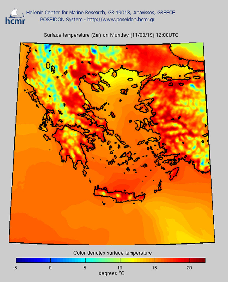 Θερμοκρασία: Θα κυμανθεί σε υψηλά για την εποχή επίπεδα.