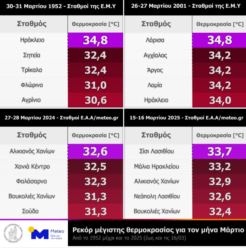 Οι θερμοκρασίες ρεκόρ του Μαρτίου τα τελευταία χρόνια