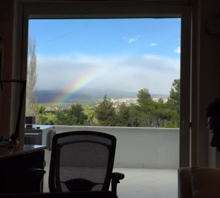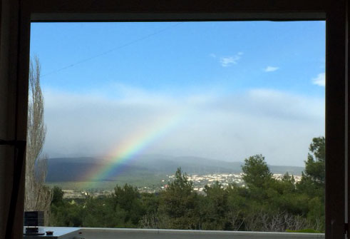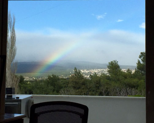 Κάποια στιγμή η ισχυρή βροχόπτωση σταμάτησε. Ο ήλιος έπαψε να κρύβεται πίσω από τα σύννεφα και ένα πανέμορφο ουράνιο τόξο έκανε την εμφάνισή του στον αττικό ουρανό.