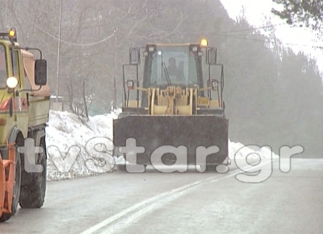 Σε όλους τους δρόμους του ορεινού όγκου του δήμου η κυκλοφορία γίνεται μόνο με αντιολισθητικές αλυσίδες, καθώς τα μηχανήματα που ήδη εργάζονται δεν προλαβαίνουν να καθαρίσουν το οδόστρωμα που καλύπτεται από χιόνι.
