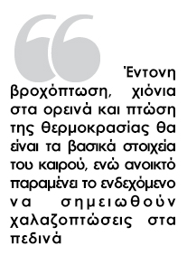 Έντονη βροχόπτωση, χιόνια στα ορεινά και πτώση της θερμοκρασίας θα είναι τα βασικά στοιχεία του καιρού, ενώ ανοικτό παραμένει το ενδεχόμενο να σημειωθούν χαλαζοπτώσεις στα πεδινά.