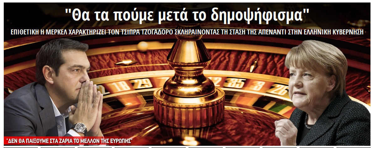 Ωστόσο, οι πρώτες αντιδράσεις της Ευρώπης δεν ήταν θετικές. Η Άνγκελα Μέρκελ εξαπέλυσε επίθεση κατά του πρωθυπουργού, ξεκαθαρίζοντας ότι «το μέλλον της Ευρώπης δεν μπορεί να παίζεται στα ζάρια» και ανέφερε ότι οποιαδήποτε ενέργεια για νέο πακέτο βοήθειας προς την Ελλάδα θα συζητηθεί μετά το δημοψήφισμα της Κυριακής.
