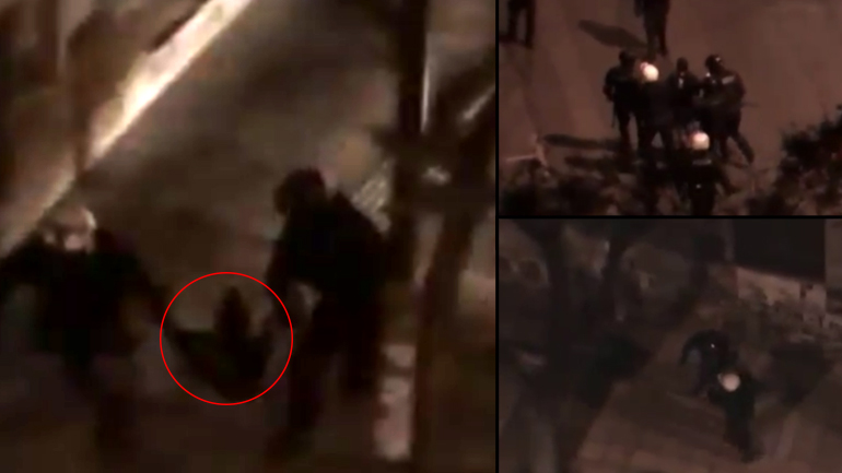 Ο «φίλαθλος» δεν έχει καλυμμένα χαρακτηριστικά ούτε φαίνεται να κρατάει κάποιο αντικείμενο στα χέρια του. Δύο αστυνομικοί τον σέρνουν για λίγα μέτρα στο πεζοδρόμιο, ενώ στη συνέχεια ο ένας από αυτούς τον χτυπά με το κλομπ, τον κλοτσά και τον σπρώχνει.