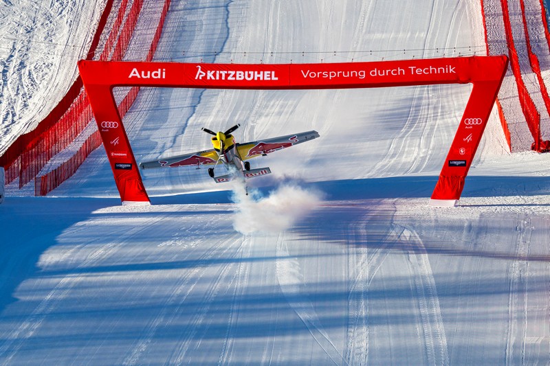 «Ήταν πραγματικά πρόκληση», αναφέρει. «Πρώτα απ’ όλα, έπρεπε να απομνημονεύσω τη διαδρομή, όπως θα έκανα για έναν αγώνα Red Bull Air Race. Ωστόσο, σε αντίθεση με μια διαδρομή Red Bull Air Race, η οποία σχεδιάζεται έτσι ώστε να πετάς με ταχύτητα 370 χλμ/ώρα χωρίς να τη μειώσεις, στη Streif έπρεπε να ρυθμίζω την ισχύ σε κάθε τμήμα, ώστε να παραμείνω εντός διαδρομής, να μην χτυπήσω εμπόδια, αλλά και να μην υπερβώ τα όρια της επιτάχυνσης G για το αεροσκάφος. Ήταν αρκετά περίπλοκη δουλειά».