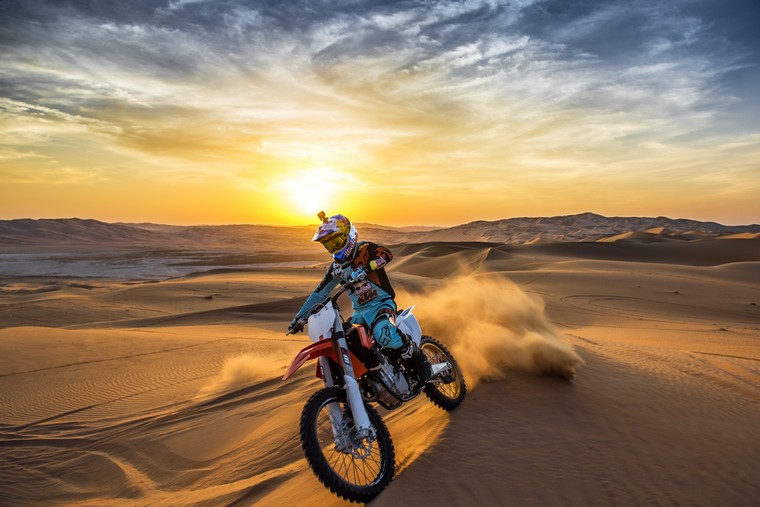 Δύο θρύλοι του Freestyle Motocross με τις μοτοσυκλέτες τους είδαν από κοντά την εκπληκτική έρημο του Rub’ al Khali νότια του Άμπου Ντάμπι πριν το φινάλε της σεζόν του Red Bull X-Fighters World Tour την Παρασκευή.