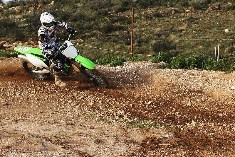 Ξεκίνημα νέας σεζόν και για τις αγωνιστικές καθαρόαιμες motocross μοτοσικλέτες και με τη βοήθεια του Α. Παπανικολάκη μπορέσαμε να έχουμε στα χέρια μας από νωρίς την ολοκαίνουργια και επανασχεδιασμένη KXF 450 κ.εκ. Για τους γνώστες και ακόλουθους της πράσινης εταιρείας, ήδη, η περσινή έκδοση της εν λόγω μοτοσικλέτας απέδιδε περισσότερο από ικανοποιητικά. Για το 2010, όμως, η Kawasaki είχε μερικούς «άσους κρυμμένους στο μανίκι», καθώς βελτίωσε μια αγωνιστική μοτοσικλέτα που ήδη ήταν καλή. Όταν, λοιπόν, το καλό γίνεται καλύτερο, η πρώτη εντύπωση που σου αφήνει η KXF, ύστερα από μερικούς γύρους στην πίστα, είναι ένα πλατύ χαμόγελο από το πόση δύναμη κρύβει ο καινούργιος τροφοδοτούμενος από ψεκασμό EFI κινητήρας. Ο ένας από τους δύο test riders μας, μάλιστα, δήλωσε χαρακτηριστικά «είναι σαν να έχεις βιδώσει μια ρουκέτα στο πλαίσιο ενός καθαρόαιμου». Πράγματι, με σχεδόν πενήντα τέσσερα άλογα την ώρα της εκκίνησης του αγώνα, ίσως, όλα τα στοιχήματα να ευνοούν τις πράσινες μοτοσικλέτες έναντι των άλλων ανταγωνιστών της. Ο τρόπος λειτουργίας του κινητήρα ξεχωρίζει με τη γραμμικότητά του από τις χαμηλές κιόλας στροφές, αποδίδει καλύτερα στις 6000 σ.α.λ. και από εκεί και πάνω μοιράζει συγκινήσεις για όσους έχουν, βέβαια, το σθένος και τη δύναμη να κρατηθούν και να ανεβάσουν ταχύτητα. Ακόμη και τα μικρά κενά που έχει το κιβώτιο ταχυτήτων επισκιάζονται από το εξαιρετικό μοτέρ. Οι μηχανικοί της Kawasaki, αναμένοντας ότι τόση ροπή στο χώμα θα διέλυε τους δίσκους του συμπλέκτη τους, έδωσαν 75% περισσότερο υλικό τριβής, πράγμα που προσδίδει στον συμπλέκτη απαλή και στιβαρή αίσθηση με σταθερότητα και διάρκεια. Ο ήχος του κινητήρα σε κερδίζει από την πρώτη γκαζιά και σε αυτό συντελεί το επανασχεδιασμένο τελικό εξάτμισης που δεν κουράζει, αλλά ευχαριστεί τα αυτιά του motocrosser που αρέσκεται στο να οδηγεί δυναμικά, κρατώντας τις ταχύτητες γεμάτες. Ο τρόπος που λειτουργεί ο ψεκασμός είναι πράγματι αριστουργηματικός, καθώς η δύναμη είναι εκμεταλλεύσιμη και από οδηγούς που κρατούν ψηλά τη ροπή αλλά και από πιο ήπιους και τεχνικούς που πιλοτάρουν αθόρυβα αλλά γρήγορα, κάνοντας νωρίτερα τις αλλαγές. Στη μείωση της θερμοκρασίας βοηθούν και τα νέα διογκωμένα ψυγεία που συντελούν και στην εργονομική σχεδίαση της μοτοσικλέτας, η οποία απέκτησε νέα γωνία κάστερ και πιο ευέλικτο ψαλίδι.