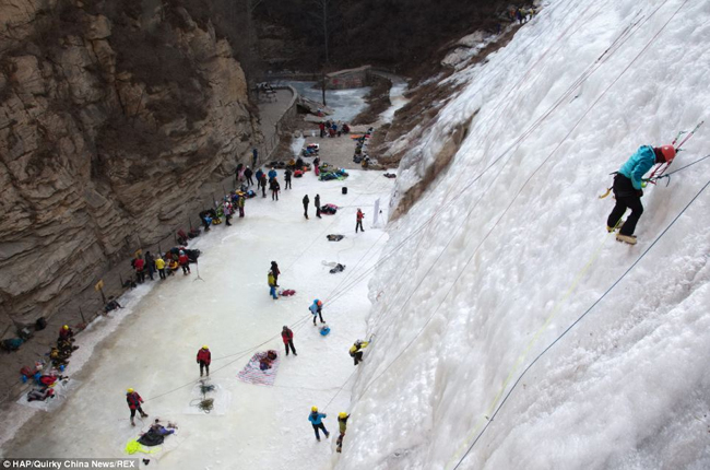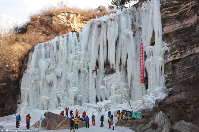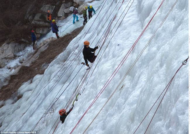 Όσοι αγαπούν την περιπέτεια μετέβησαν στους παγωμένους καταρράκτες της επαρχίας Miyun του Πεκίνου και επιδόθηκαν στο αγαπημένο τους χόμπι, δηλαδή την αναρρίχηση!