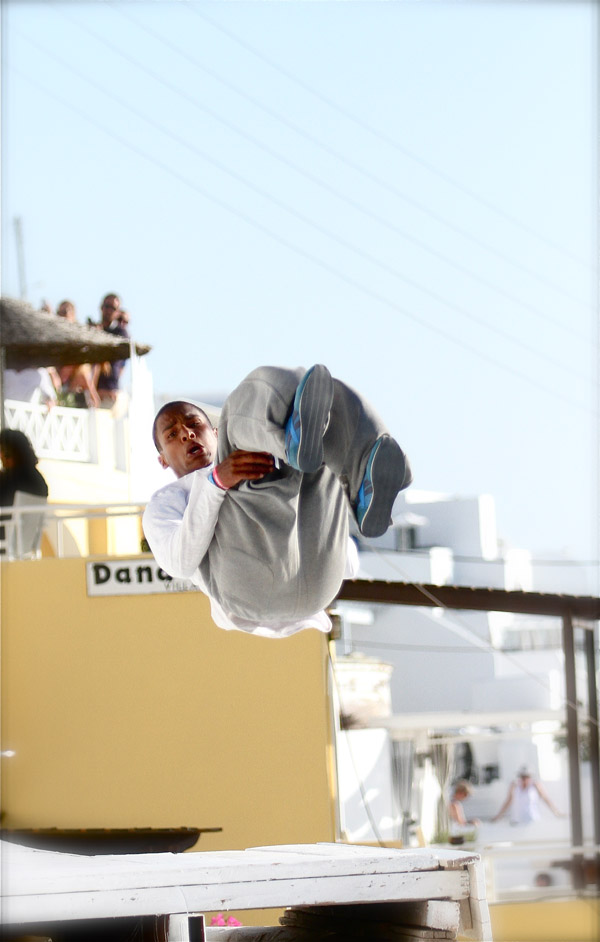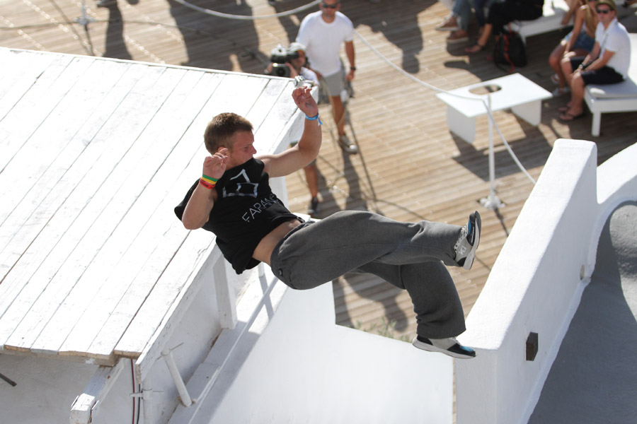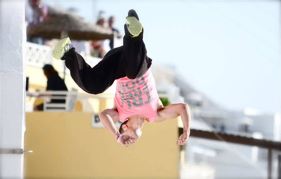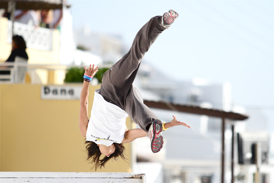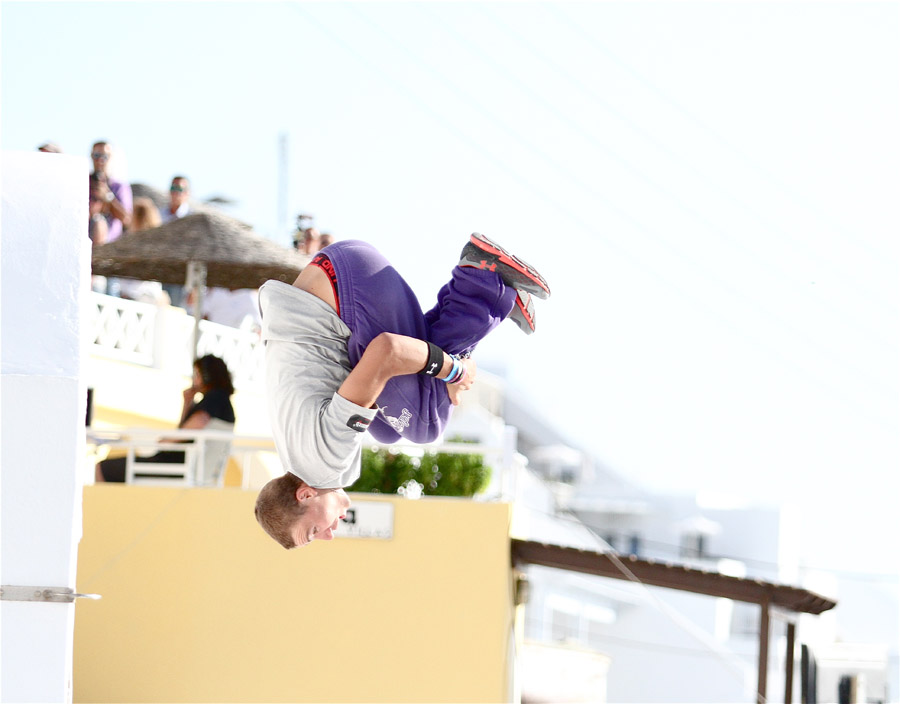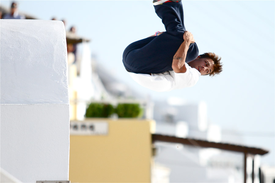 Στην Σαντορίνη και συγκεκριμένα στην μαγευτική καλντέρα πραγματοποιήθηκε το Σάββατο 29 Οκτωβρίου αγώνας Parkour με την ονομασία Red Bull Art Of Motion. Κορυφαίοι αθλητές από ολόκληρο τον πλανήτη διαγωνίστηκαν για την πρώτη θέση αλλά τελικά ο Pasha Petkuns γιόρτασε με τον ιδανικότερο τρόπο τα 20ά του γενέθλια πανηγυρίζοντας στο βάθρο των νικητών.