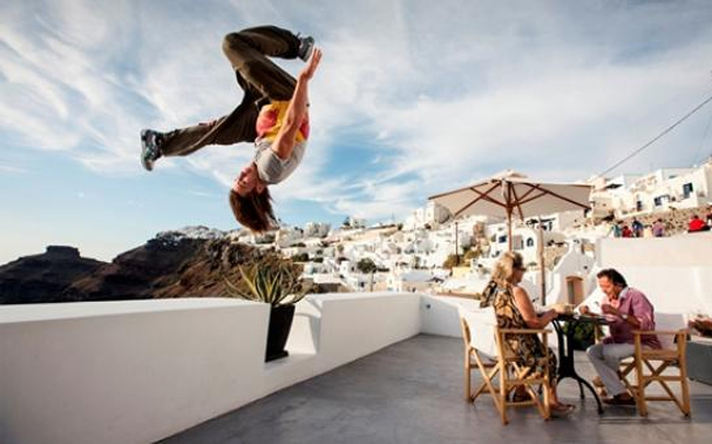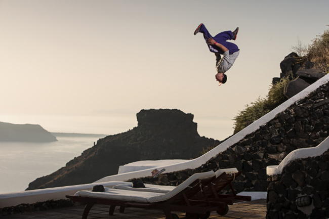 Κάτι ανάλογο θα συμβεί και σήμερα οπότε και οι σκεπές και τα καλντερίμια της Καλντέρας θα μετατραπούν στην πιο φυσική “πίστα” για τους καλύτερους freerunners του κόσμου. Η έναρξη του Red Bull Art of Motion είναι προγραμματισμένη για τις 16:00 και έχει συγκεντρώσει την αφρόκρεμα κορυφαίων αθλητών από τη Γαλλία, τη Σουηδία, τις ΗΠΑ, την Ολλανδία, τη Ρωσία και φυσικά την Ελλάδα. Μεταξύ άλλων θα επιδοθούν, όπως μόνο εκείνοι ξέρουν, σε tricks, runs και drops που κόβουν την ανάσα για τρίτη συνεχόμενη χρονιά. Φυσικά δεν θα λείπει και ο Λετονός Pavel Petkuns που κατάφερε να κατακτήσει την πρώτη θέση του βάθρου για δύο συνεχόμενες χρονιές. Μοναδικός στόχος των αθλητών είναι να διανύσουν ελεύθερα την απόσταση από το σημείο εκκίνησης στο σημείο τερματισμού, παλεύοντας για μια θέση στο βάθρο…