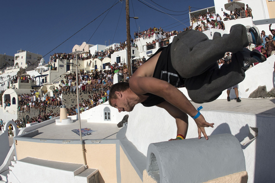 Παρουσία χιλιάδων θεατών πραγματοποιήθηκε σήμερα ο αγώνας «Red Bull Art of Motion» ο οποίος συγκέντρωσε την αφρόκρεμα των κορυφαίων αθλητών Parkour στον κόσμο. Η Σαντορίνη φιλοξένησε το μεγάλο αυτό αθλητικό γεγονός προβάλλοντας με τον καλύτερο τρόπο στο εξωτερικό την Ελλάδα ενώ οι μαγευτικές εικόνες της καλντέρας ταξίδεψαν μέσα από τη zougla.gr (ζωντανή κάλυψη) σε ολόκληρο τον πλανήτη. Παρά το γεγονός ότι η θερμοκρασία χτύπησε… κόκκινο το «Red Bull Art of Motion» συγκέντρωσε πολύ κόσμο που βρέθηκε σε κάθε ταράτσα, σε κάθε σοκάκι, σε κάθε σπίτι για να παρακολουθήσει ένα μοναδικό θέαμα που δεν συναντάς κάθε μέρα. Λογικό ήταν και αυτή την χρονική περίοδο, στην πλειοψηφία τους οι θεατές να είναι ξένοι που εντυπωσιάστηκαν βλέποντας τους αθλητές να… μονομαχούν για να πετύχουν το καλύτερο ακροβατικό απολαμβάνοντας παράλληλα τη μοναδική θέα από το βράχο της Σαντορίνης.
