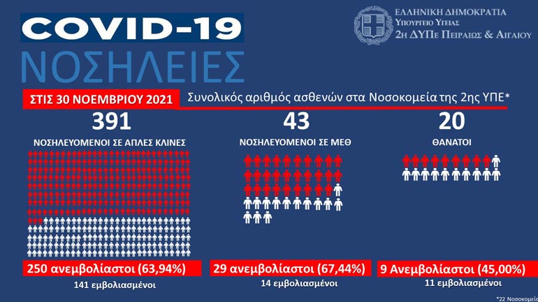 Τα στοιχεία αυτά αφορούν τους αριθμούς νοσηλευομένων, διασωληνωμένων και τέλος των νεκρών από Covid-19.