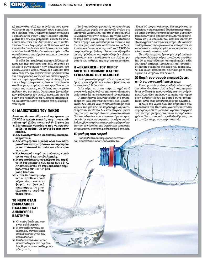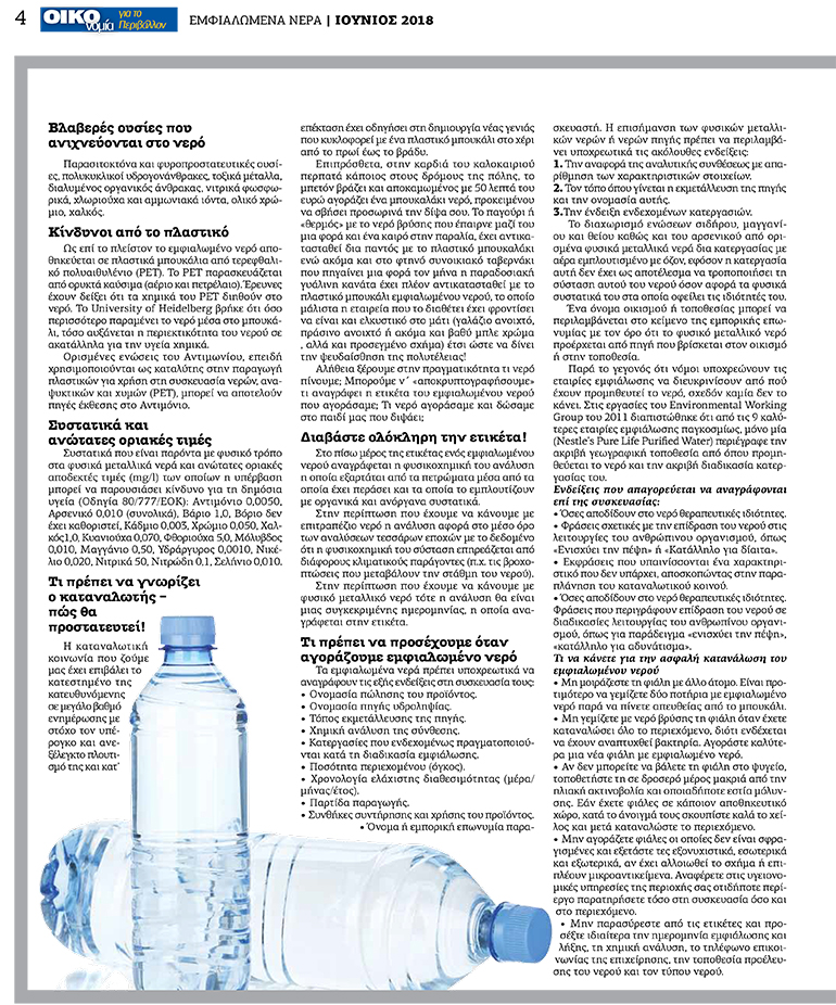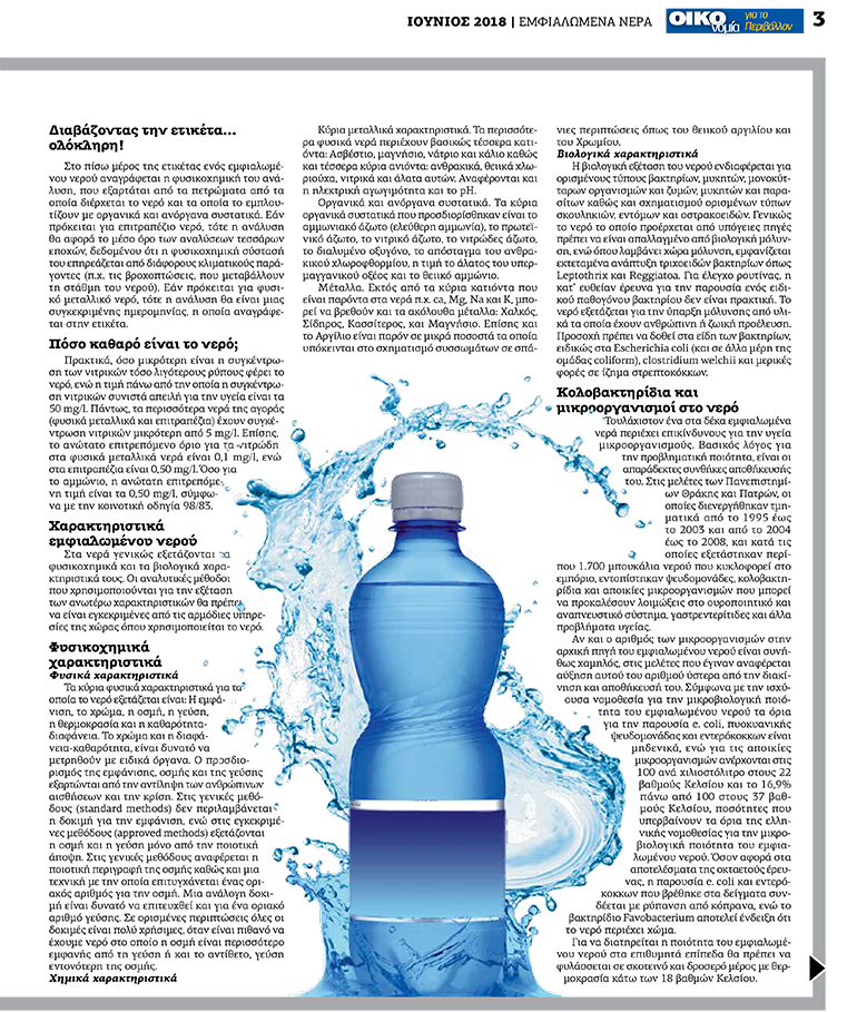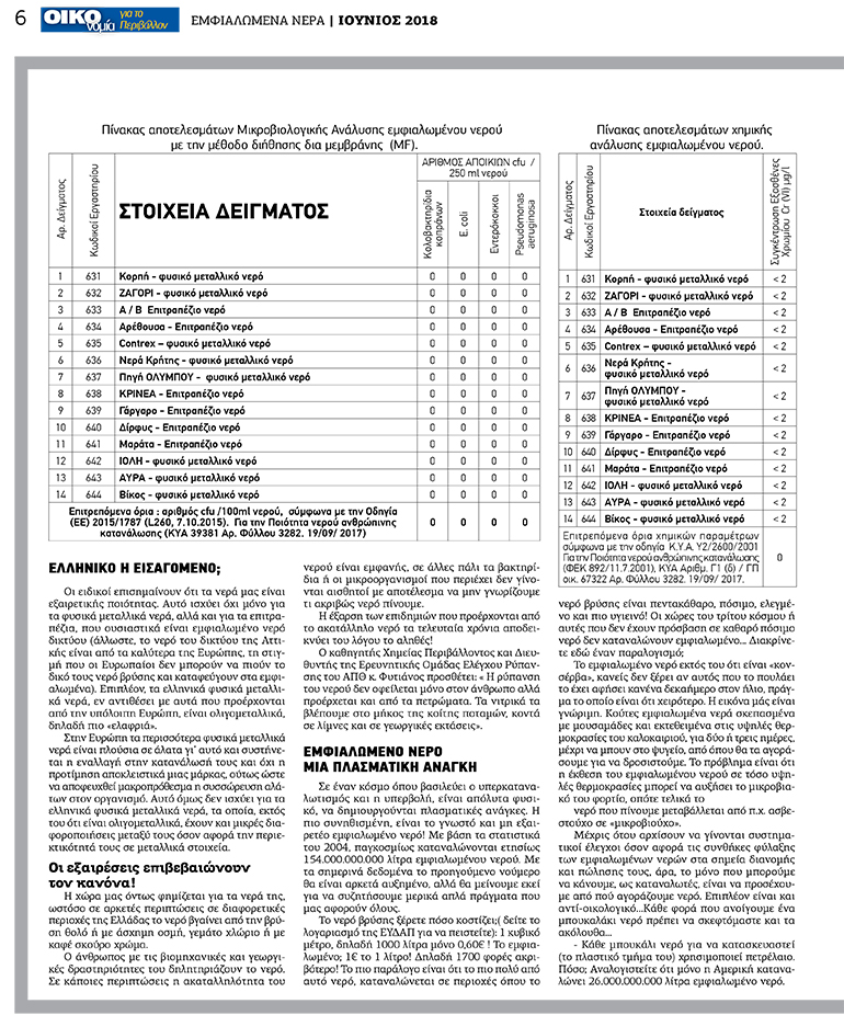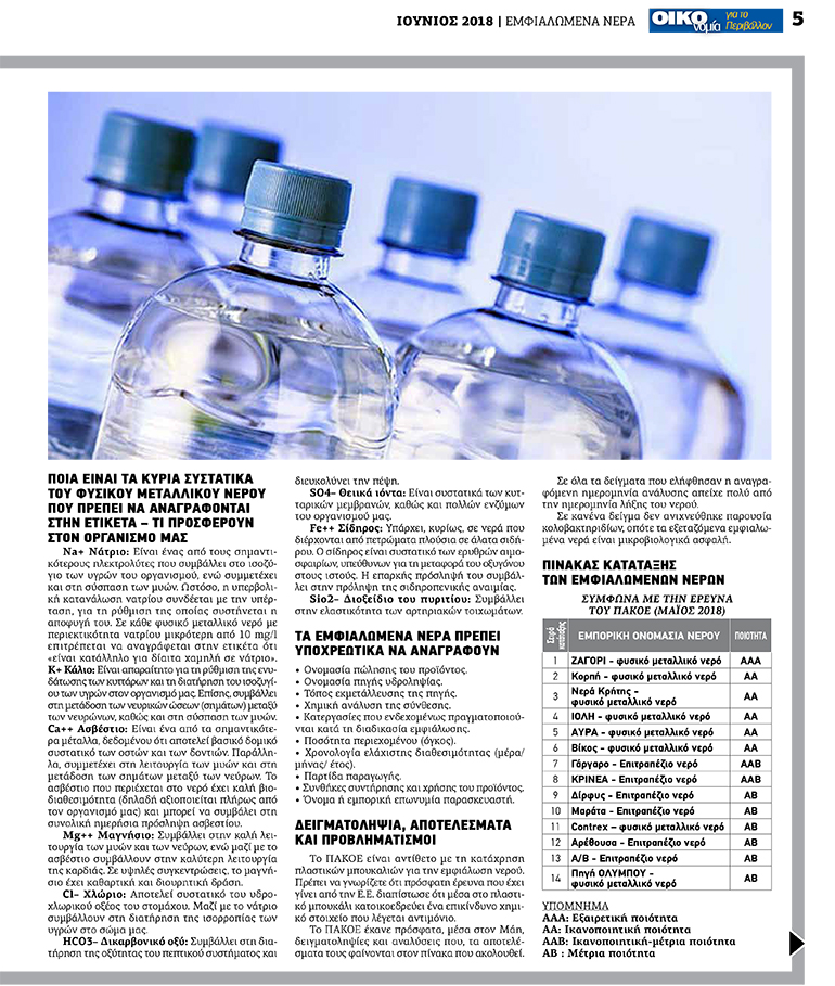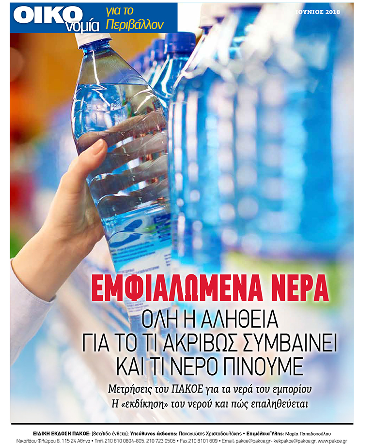 Το Πανελλήνιο Κέντρο Οικολογικών Ερευνών δημοσίευσε τη μελέτη του για την ποιότητα των εμφιαλωμένων νερών που καταναλώνονται στη χώρα μας. «Πόσοι από εμάς,γνωρίζουμε τι πίνουμε; Και πόσοι μπορούμε να καταλάβουμε τι αναγράφεται στην ετικέτα ενός εμφιαλωμένου νερού, καθώς και αν έχουμε κάνει την καλύτερη επιλογή νερού;», αναφέρεται στην εισαγωγή της μελέτης, καθώς επιχειρείται από τους συντάκτες της η πλήρης ενημέρωση γύρω από αυτό το ζήτημα, και, κυρίως, συμβουλές για το τι πρέπει να γνωρίζει ο καταναλωτής για να προστετευθεί.