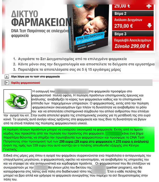 Μπαίνοντας μέσα στις ιστοσελίδες τους, ο ενδιαφερόμενος «πληροφορείται» για το πώς και πόσο «εύκολα» μπορεί οποιοσδήποτε, «μέσα σε λίγα βήματα», να αγοράσει το σετ δειγματοληψίας (από κάποιο φαρμακείο ή με κούριερ), να προβεί μόνος του στη δειγματοληψία και να αποστείλει τα δείγματα (αίμα ή σίελο ή τρίχες ή αποτσίγαρα… ή… ή…) χωρίς να τηρείται κανένα πρωτόκολλο, χωρίς να ελέγχεται από την εταιρεία που θα παραλάβει τα εν λόγω δείγματα η πραγματική ταυτότητά τους, χωρίς να διασφαλίζεται τίποτε απολύτως σε τόσο ευαίσθητης υφής ζητήματα.