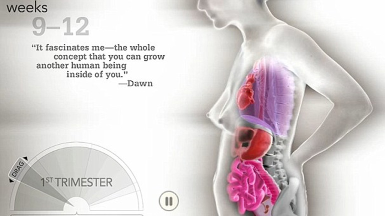 Στο video προβάλλονται μέσω κινούμενων σχεδίων που έχουν δημιουργηθεί από υπολογιστή οι κινήσεις οι οποίες πραγματοποιούνται στην κοιλιά της εγκύου.