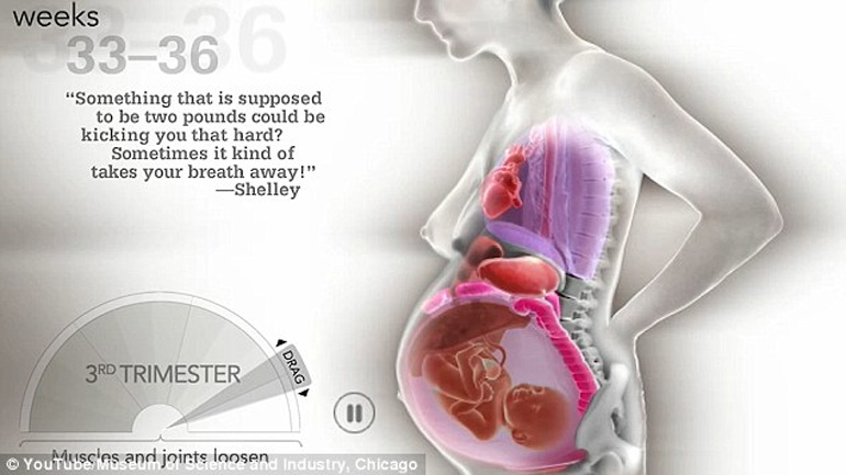 Η μικρού μήκους ταινία δείχνει τη μήτρα να επεκτείνεται, τα έντερα και το στομάχι να μετακινούνται και να δείχνουν στριμωγμένα.