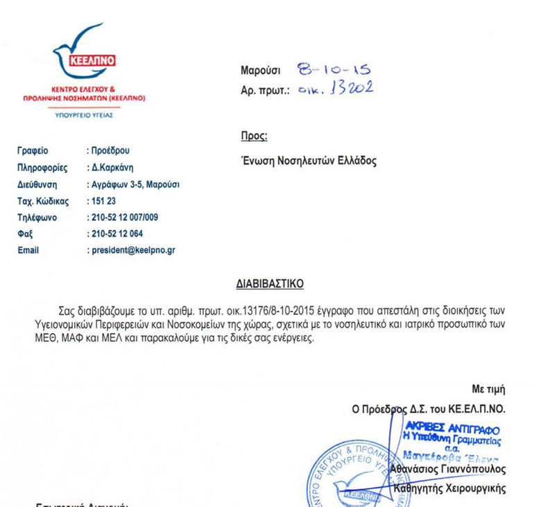 Κατόπιν των συνεχιζόμενων και κλιμακούμενων πιέσεων από την ΕΝΕ σχετικά με τη λήξη των συμβάσεων των 170 Νοσηλευτών των ΜΕΘ και ΜΑΦ, κάτι που οδήγησε στην αναστολή της λειτουργίας δεκάδων πολύτιμων κλινών, το ΚΕΕΛΠΝΟ με σημερινή του απόφαση, κατόπιν εισήγησης του προέδρου κ. Γιαννόπουλου, παρατείνει τη συνέχιση της αμοιβής των εν λόγω νοσηλευτών μέχρι την ολοκλήρωση των διαδικασιών για τη νέα προκήρυξη, επανατοποθετώντας στις θέσεις τους όλους τους νοσηλευτές των οποίων οι συμβάσεις είχαν εκπνεύσει από την αρχή του Οκτώβρη.