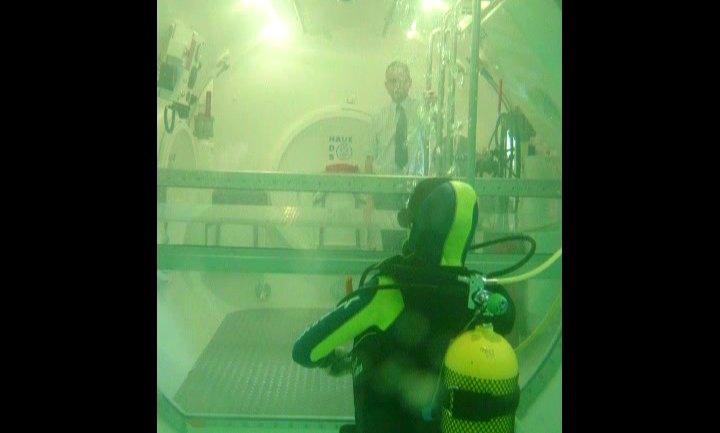 Ο θάλαμος αυτός κατά τα 2/3 μπορεί να είναι γεμάτος με νερό, γεγονός που παρέχει την δυνατότητα λήψης σχεδόν πραγματικών διαγνωστικών μέτρων για τους δύτες κατά τη διάρκεια έκθεσης σε διάφορα βάθη νερού καθώς και κάτω από πίεση (οριζόντια κολύμβηση ενάντια στην αντίσταση). Αυτό ισχύει όχι μόνο για ειδικά θέματα σχετικά με τις δυνατότητες εφαρμογής αλλά σε μεγάλο βαθμό και για επιστημονικά ερευνητικά προγράμματα. Αξίζει να σημειώσουμε ότι όλος ο ιατροτεχνολογικός εξοπλισμός της μονάδας έφτασε τα 3 εκατ. ευρώ , ενώ η ετήσια συντήρηση των εν λόγω θαλάμων φτάνει τα 50.000 ευρώ.