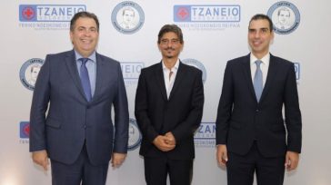 Από αριστερά προς δεξιά: κ. Ηλίας Γουζούασης, Διοικητής Γ.Ν.Π. Τζάνειο, κ. Δημήτρης Γιαννακόπουλος, Πρόεδρος του Ιδρύματος «Παύλος Γιαννακόπουλος» και κ. Μάριος Θεμιστοκλέους, Υφυπουργός Υγείας.