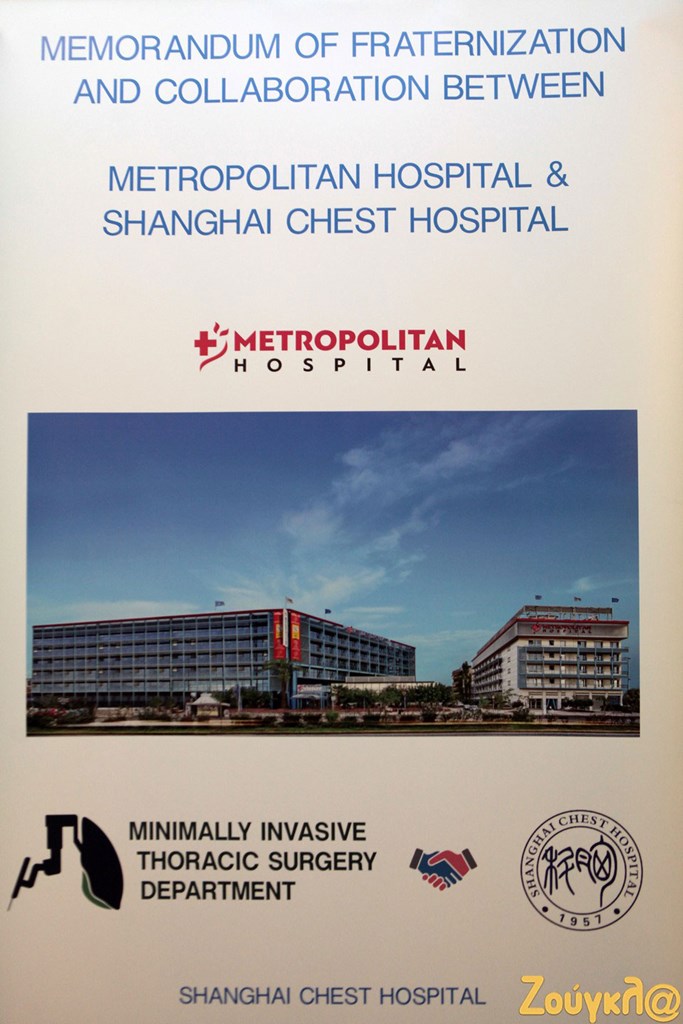 Σε μια ιδιαίτερα σημαντική και τιμητική σύμπραξη προχωρά το Τμήμα Ελάχιστα Επεμβατικής Θωρακοχειρουργικής του Metropolitan Hospital υπογράφοντας μνημόνιο Αδελφοποίησης και Συνεργασίας με το Shanghai Chest Hospital της Κίνας, το πρώτο νοσοκομείο παγκοσμίως που ειδικεύεται στη θεραπεία θωρακοχειρουργικών περιστατικών.