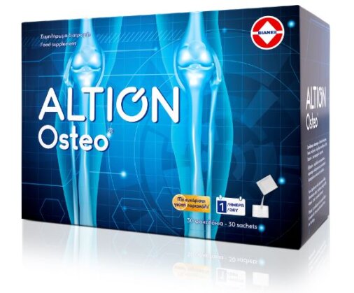Όλα τα παραπάνω, είναι μόνο μερικά από τα ευεργετικά συστατικά τα οποία μπορεί να βρει κάποιος στο καινοτόμο συμπλήρωμα διατροφής ALTION osteo®. Διαθέτει επιπλέον υδρολυμένο κολλαγόνο τύπου ΙΙ, υαλουρονικό οξύ και βιταμίνη C που ενισχύει το φυσιολογικό σχηματισμό κολλαγόνου βοηθώντας παράλληλα τη βέλτιστη λειτουργία οστών και χόνδρων Είναι με άλλα λόγια η καλύτερη λύση για να στηρίξετε τις αρθρώσεις σας και να απαλλαγείτε από τις ενοχλήσεις που δυσχεραίνουν επιπλέον την καθημερινότητα.