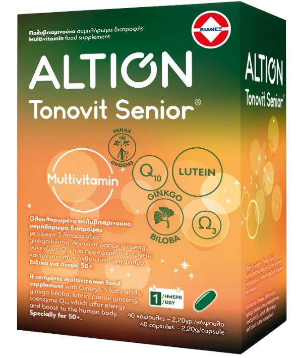 Μερικές φορές το μόνο που χρειάζεται να κάνουμε είναι να στραφούμε προς τη φύση καθώς αποτελεί  ένα τεράστιο «φαρμακείο» που φροντίζει τα όντα της, όπως εμάς. Ένα από τα συστατικά που σου  προσφέρει αυτό το φαρμακείο είναι και το βότανο Panax Ginseng, το οποίο σε συνδυασμό με το  Ginkgo Biloba, συναντάμε στο ειδικά σχεδιασμένο συμπλήρωμα διατροφής για άτομα άνω των 50  ετών, ALTION Tonovit Senior®. Πρόκειται για πολυβιταμίνη ολοκληρωμένης σύνθεσης, η οποία εκτός  από τα παραπάνω συστατικά περιλαμβάνει και λουτεΐνη, ευεργετικό συστατικό για τη βέλτιστη υγεία  της όρασης, η οποία με την πάροδο του χρόνο τείνει να εξασθενεί, συνένζυμο Q10, το οποίο  προστατεύει τα κύτταρά μας από τις επιβλαβείς ελεύθερες ρίζες, επιβραδύνοντας έτσι τα συμπτώματα  γήρανσης και χαρίζοντάς μας επιπλέον «ώθηση» και ενέργεια μέσα στην ημέρα. Το συγκεκριμένο  συμπλήρωμα διατροφής δεν περιέχει ιώδιο, και είναι «πλούσιο» σε 13 βιταμίνες μαζί με 8 μέταλλα και  ιχνοστοιχεία, τα οποία καταφέρνουν να «κρατήσουν» τον οργανισμό σας σε ενεργειακή φόρμα  σωματικά και πνευματικά.