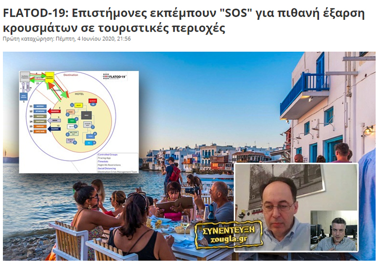 Η ομάδα FLATOD-19 αποτελεί την πρωτοβουλία 12 Ελλήνων επιστημόνων -οι 4 ζουν στο εξωτερικό, από διαφορετικούς κλάδους και ειδικότητες-, οι οποίοι από τις απαρχές της πανδημίας ασχολούνται με την εκπόνηση συγκεκριμένων προτάσεων για τη διαχείριση της κατάστασης, ιδιαίτερα δε στον τομέα του τουρισμού. Οι επιστήμονες εξέπεμπαν ήδη SOS από τις αρχές του καλοκαιριού ότι χωρίς τη λήψη ολοκληρωμένης δέσμης μέτρων θα καταλήξουμε σε έξαρση των κρουσμάτων, ενώ μετά το πέρας του καλοκαιριού επανήλθαν με την παρουσίαση σημαντικών πορισμάτων στα οποία κατέληξαν, αξιοποιώντας τις έρευνες και τις εμπειρίες τους.