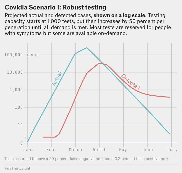 Η πραγματική αιχμή στις νέες μολύνσεις σε αυτό το σενάριο έρχεται στις 16 Μαρτίου – και σε αυτό το σημείο, οι δοκιμές δεν έχουν κλιμακωθεί πλήρως και πολλοί άνθρωποι που θα ήθελαν ένα τεστ ακόμα δεν μπορούν να πάρουν ένα.