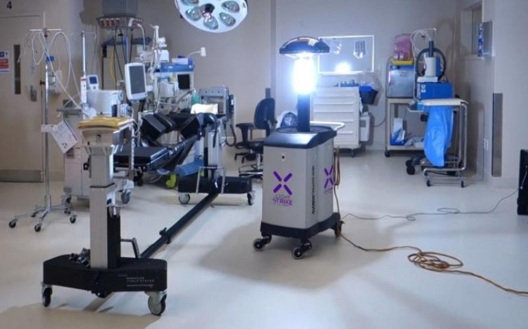 Το ρομπότ LightStrike της εταιρείας ιατρικού εξοπλισμού Terumo εκπέμπει υπεριώδες φως σε μήκος κύματος 200 έως 315 νανομέτρων, το οποίο απολυμαίνει κρεβάτια, πόμολα και άλλες επιφάνειες. Μετά από ακτινοβόληση δύο έως τριών λεπτών οι παθογόνοι μικροοργανισμοί έχουν υποστεί αρκετή βλάβη για να αδρανοποιούνται ή να καταστρέφονται.