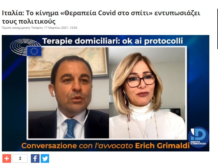 Συνολικά 8 Ιταλοί ευρωβουλευτές ζητούν με ερώτησή τους στην Κομισιόν να προχωρήσει η θεραπεία ασθενών με Covid-19 στο σπίτι. Πρόκειται για τους ευρωβουλευτές Luisa Regimenti (ID), Matteo Adinolfi (ID), Simona Baldassarre (ID), Francesca Donato (ID), Silvia Sardone (ID), Lucia Vuolo (ID), Tudor Ciuhodaru (S&D), και Elena Lizzi (ID).