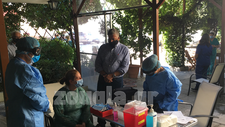 Ειδικότερα οι Κινητές Ομάδες Επισκέψεων στο Σπίτι (KOEΣ), οι οποίες αποτελούνται από εξειδικευμένους γιατρούς, πνευμονολόγους, καρδιολόγους, παθολόγους, γενικούς γιατρούς και νοσηλεύτριες ΠΕ, επισκέπτονται διαδοχικά τις παραπάνω δομές για να προβούν σε λήψη ρινοφαρυγγικού δείγματος και εξέταση αυτού με την τεχνική PCR, σε συνεργασία με τον ΕΟΔΥ.