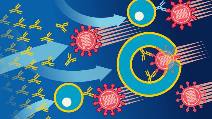 Μεταξύ αυτών των προσαρμοστικών κυττάρων είναι τα κύτταρα Β, το καθένα προγραμματισμένο να αναγνωρίσει ένα ελαφρώς διαφορετικό κομμάτι ξένης ύλης. Κατά τη διάρκεια της ανάπτυξής τους, μεμονωμένα κύτταρα Β αναμιγνύονται και ταιριάζουν με τμήματα γονιδίων που κωδικοποιούν αντισώματα, δημιουργώντας δισεκατομμύρια ή τρισεκατομμύρια μοναδικούς συνδυασμούς. Το αποτέλεσμα είναι ένα πλήθος μορίων σχήματος Υ που μπορούν, συλλογικά, να «ανταποκρίνονται σε ξένα παθογόνα που ανιχνεύουν», λέει ο Kim Jacobson, ανοσολόγος στο Πανεπιστήμιο Monash της Αυστραλίας. Ο εστιασμός αυτών των αντισωμάτων είναι τόσο ακριβής που μπορούν να διακρίνουν ακόμη και τις απομονωμένες γωνίες και σχισμές που διακοσμούν την επιφάνεια ενός ιού.