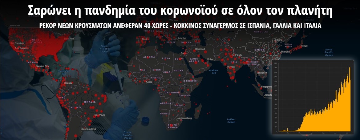 Ο ρυθμός εξάπλωσης της πανδημίας επιταχύνεται σε όλο τον κόσμο, με περισσότερα από 5 εκατομμύρια νέα κρούσματα να έχουν καταγραφεί από την 1η Ιουλίου, δηλαδή περισσότερο από το ένα τρίτο του συνολικού αριθμού των μολύνσεων από την έναρξη της πανδημίας του κορωνοϊού.