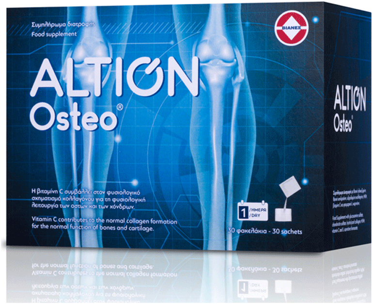 Όταν, λοιπόν, ο πόνος στις αρθρώσεις «επιμένει», με ένα φακελάκι ALTION Osteo την ημέρα, η συνιστώμενη ημερήσια δόση μπορεί να δράσει αποτελεσματικά και να απαλύνει από τις ενοχλήσεις με φυσικό και πρακτικό τρόπο. Αναβαθμίζοντας έτσι, την ποιότητα ζωής χωρίς τη δυσκαμψία, που οφείλεται στη μηχανική καταπόνηση των αρθρώσεων. Το ALTION Osteo διευκολύνει αποδεδειγμένα τη διατήρηση της ευελιξίας των αρθρώσεων και προάγει την άνεση στην καθημερινή κίνηση.