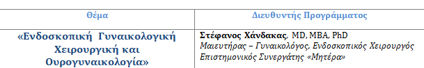 Το «ΜΗΤΕΡΑ» στην προσπάθειά του όχι μόνο να παρέχει άριστες ιατρικές υπηρεσίες αλλά και να υπηρετεί, την έρευνα και την επιμόρφωση, για τρίτη συνεχή χρόνια διοργανώνει το μετεκπαιδευτικό πρόγραμμα πρακτικής άσκησης με σκοπό την εξειδίκευση και την εξοικείωση νέων γιατρών με τις νέες τεχνικές της ελάχιστα επεμβατικής χειρουργικής στη Γυναικολογία.