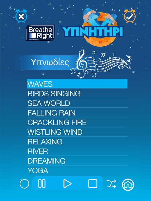 Η εφαρμογή «Υπνητήρι» περιλαμβάνει πολλές και εναλλακτικές μεθόδους χαλάρωσης, όπως: