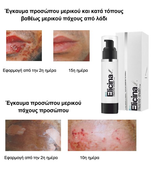 Η φυσική επιλογή για την ανάπλαση του δέρματος και για τη θεραπεία ουλών, εγκαυμάτων, τραυμάτων και κατακλίσεων ακούει στο όνομα «Elicina®». Πρόκειται για την αυθεντική θεραπευτική καλλυντική κρέμα που παράγεται από τις εκκρίσεις του σαλιγκαριού Helix Aspersa Muller και περιέχει τα πιο σημαντικά φυσικά συστατικά για την ανάπλαση και τη φροντίδα του δέρματος: αλλαντοΐνη, ελαστίνη, κολλαγόνο, γλυκολικό οξύ, πρωτεΐνες και βιταμίνες και φυσικά πεπτίδια με αντιβακτηριακές ιδιότητες στις οποίες οφείλεται η δυνατότητα εφαρμογής του προϊόντος σε ανοικτές βλάβες, χωρίς τον κίνδυνο επιμόλυνσης.