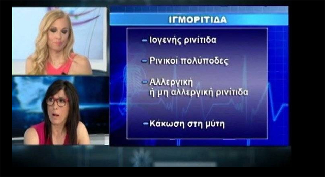 Η ιατρός Ανατολή Παταρίδου φιλοξενήθηκε στην εκπομπή «Ζήσε με υγεία» και μίλησε για τη χρόνια ιγμορίτιδα και πόσο εύκολα μπορεί να θεραπευτεί κανείς με τη μέθοδο της ρομποτικής χειρουργικής ΩΡΛ.
