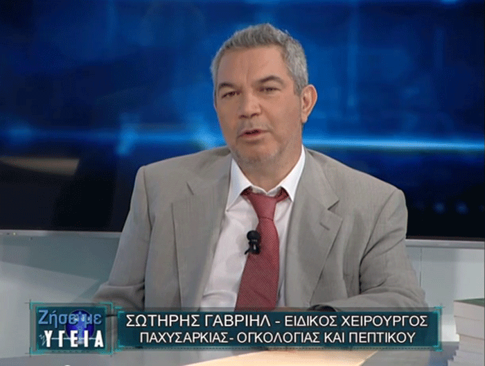Ο γιατρός Σωτήρης Γαβριήλ φιλοξενήθηκε στην εκπομπή «Ζήσε με Υγεία» και μίλησε για τη νοσογόνο παχυσαρκία και τις επιπτώσεις που έχει στην υγεία. Μας πληροφόρησε επίσης για τις τεχνικές που εφαρμόζονται και που είναι πολύ αποτελεσματικές, όπως για παράδειγμα ο γαστρικός δακτύλιος, το γαστρικό μανίκι και άλλα, που αποτρέπουν τους ασθενείς να καταφεύγουν σε κομπογιανιτισμούς και ανορθόδοξες μεθόδους απώλειας βάρους (χάπια, αλοιφές κλπ).