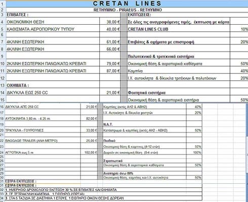 Η Cretan Lines προς ενημέρωση των Ρεθυμνιωτών, ανακοίνωσε τις τιμές των εισιτηρίων, επιβατών και οχημάτων και τις εκπτώσεις ανά κατηγορία.