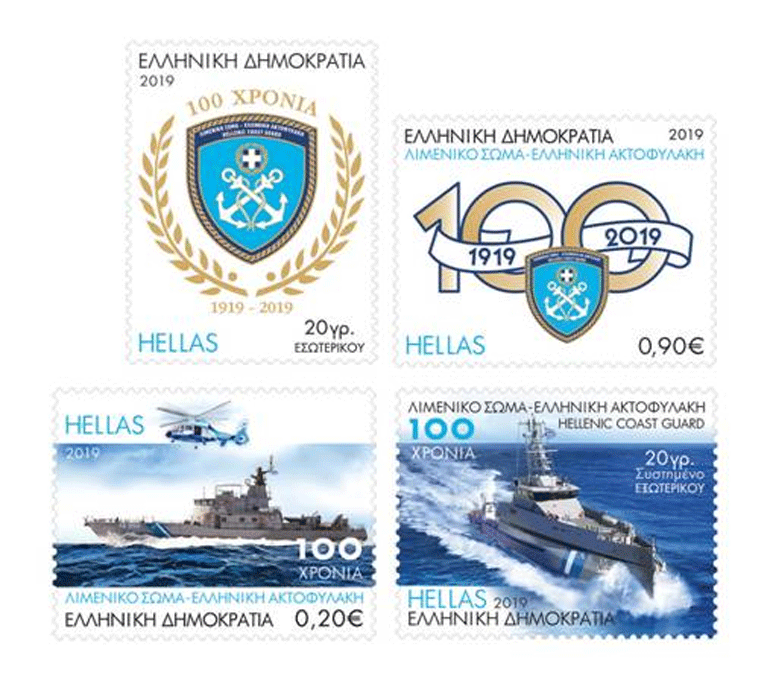 Τα Ελληνικά Ταχυδρομεία τιμούν το Λιμενικό Σώμα – Ελληνική Ακτοφυλακή, που εφέτος συμπληρώνει 100 χρόνια ιστορίας και προσφοράς, με την έκδοση και κυκλοφορία, στις 16 Σεπτεμβρίου 2019, της αναμνηστικής σειράς γραμματοσήμων «100 χρόνια Λιμενικό Σώμα».