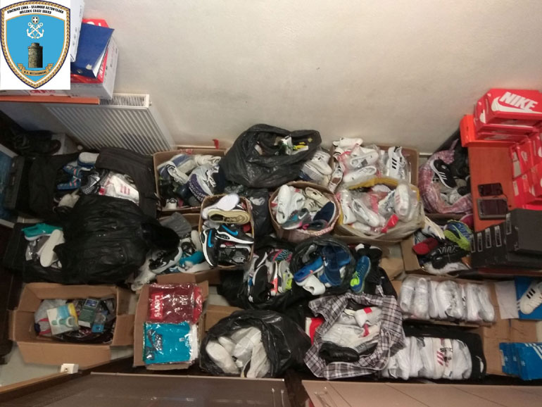 Στη συνέχεια, ακολούθησε νομότυπη έρευνα στην οικία ενός εκ των τριών συλληφθέντων, όπου βρέθηκαν και κατασχέθηκαν συνολικά εκατόν τρία (103) ζευγάρια παπούτσια σε διάφορες μάρκες, για τα οποία δεν υπήρχαν νόμιμα παραστατικά έγγραφα.