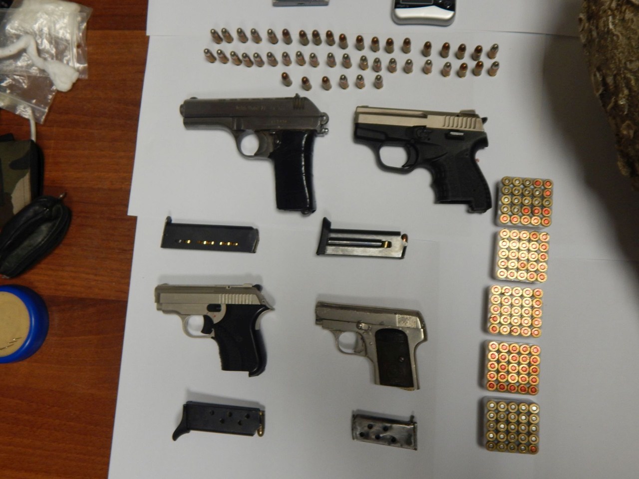 6)τρία (03) πιστόλια διαμετρήματος 7,65mm και ένα (01) διαμετρήματος 6,35mm, αμφότερα με γεμιστήρα,