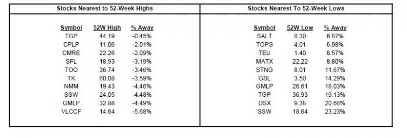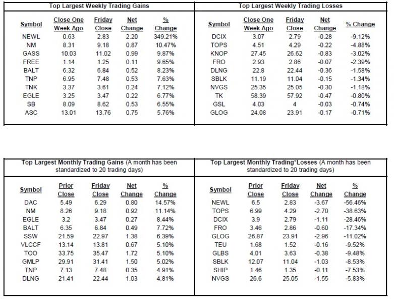 Οι ναυτιλιακές μετοχές με τις καλύτερες αποδόσεις ήταν οι μετοχές εταιρειών κοντέινερ, με τον αντίστοιχο δείκτη να ενισχύεται 3,19%, ενώ στη δεύτερη θέση έρχονται οι μετοχές ξηρού φορτίου με τον δείκτη να σημειώνει κέρδη 2,41%. Οι μετοχές με τις χειρότερες αποδόσεις ήταν οι μετοχές τάνκερ οι οποίες σημείωσαν πτώση 0,67%.