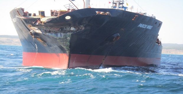 Το χωρητικότητας 38.000 DWT CS Jaden ήταν φορτωμένο με σιτάρι, ενώ το με σημαία Παναμά και χωρητικότητας 17.000 DWT Paros Wind μετέφερε φορτίο πετρελαίου. Οι φωτογραφίες δείχνουν ζημιές στην πλώρη του δεξαμενόπλοιου και στην αριστερή πλευρά του πλοίου μεταφοράς φορτίου χύδην.