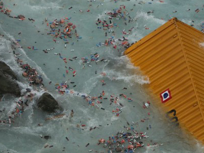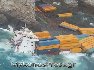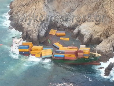Λόγω των ισχυρών ανέμων, μικρός αριθμός εμπορευματοκιβωτίων έχει αποσπαστεί από το φορτίο του πλοίου, τα οποία επιπλέουν, επίσης, μεταξύ πλοίου και βραχώδους ακτής.